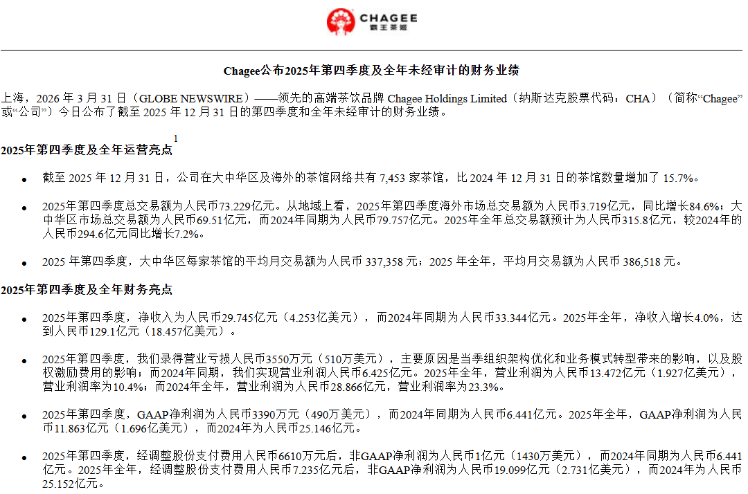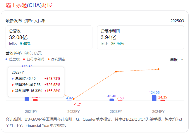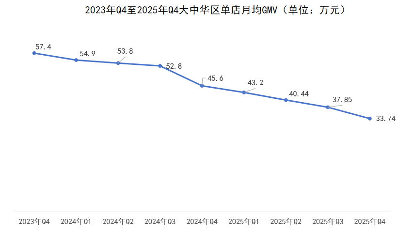 以茶会友、东方美学,立志做中国版“星巴克”、果断参取外卖混和,霸王茶姬一直是新茶饮赛道里独树一帜的存正在。从2020年盘踞西南一隅、仅200店的区域品牌,到2024年门店数狂飙至6440家,再到2025年敲钟美股的新茶饮明星;一杯伯牙绝弦撑起门店半壁山河,商场C位的高实收率让加盟商砸下百万投入,8-10个月快速回本的庞大,更让加盟名额被炒至70万,十几万人挤破头入局这场加盟狂欢。然而,这场制富的反转,比短剧更猝不及防:大中华区单店月均GMV从2023年Q4的57。4万元,持续8个季度下滑至2025年Q4的33。74万元,缩水幅度超四成;大单品破灭,新品迭代迟缓,门店无序加密持续分流客流。已经趋附者众的加盟商,现在或黯然离场,或正在吃亏泥潭中苦苦支持。2025年全年霸王茶姬归母净利润仅11。35亿元,较上年同期腰斩过半;经调整后的净利润为19。1亿元,同比降幅跨越20%。
